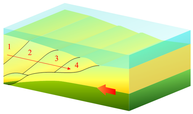 付加体の成長。原則として新しい付加体が海溝側に形成されていきます。[画像クリックで拡大]