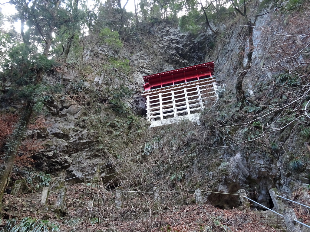 栃木市の出流町にある出流山満願寺の奥ノ院は、石灰岩の断崖に建造されています。2019年2月撮影。[画像クリックで拡大]