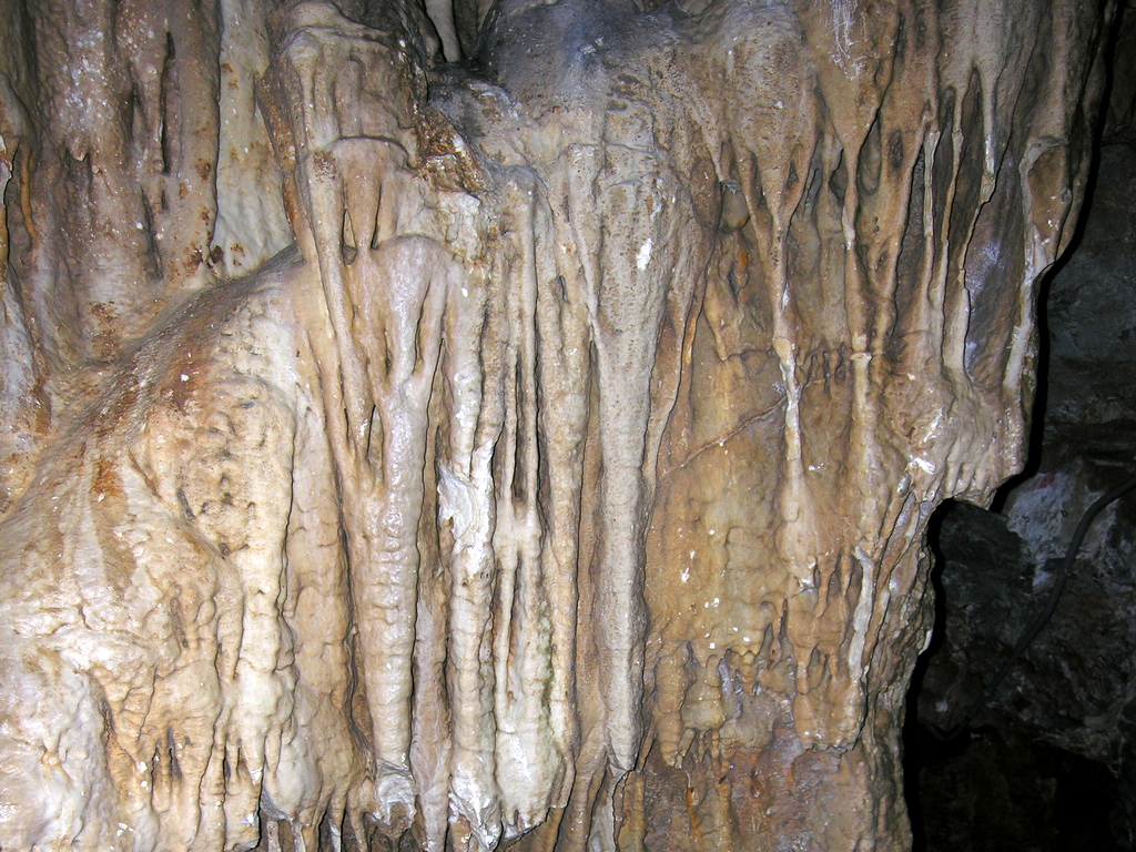 石灰岩は長い年月のうちに水に溶けて独特の地形を作り出します。栃木県の石灰岩分布地域にも、所々に鍾乳洞が残されています。栃木市の出流町にある出流山満願寺の奥ノ院では、鍾乳石が十一面観世音の後ろ姿として信仰されています。