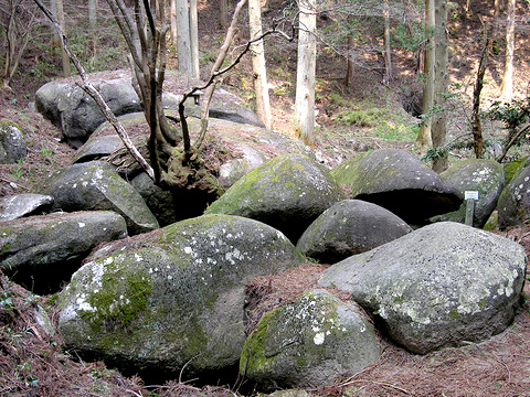 足利岩体と呼ばれる後期白亜紀花崗岩の産状。名草の巨石群として有名。[画像クリックで拡大]