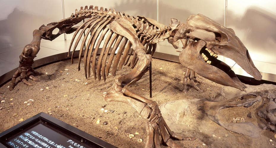 デスモスチルスの化石標本。新生代中新世に生息していた大型の哺乳類ですが、その後絶滅してしまいます。[画像クリックで拡大]