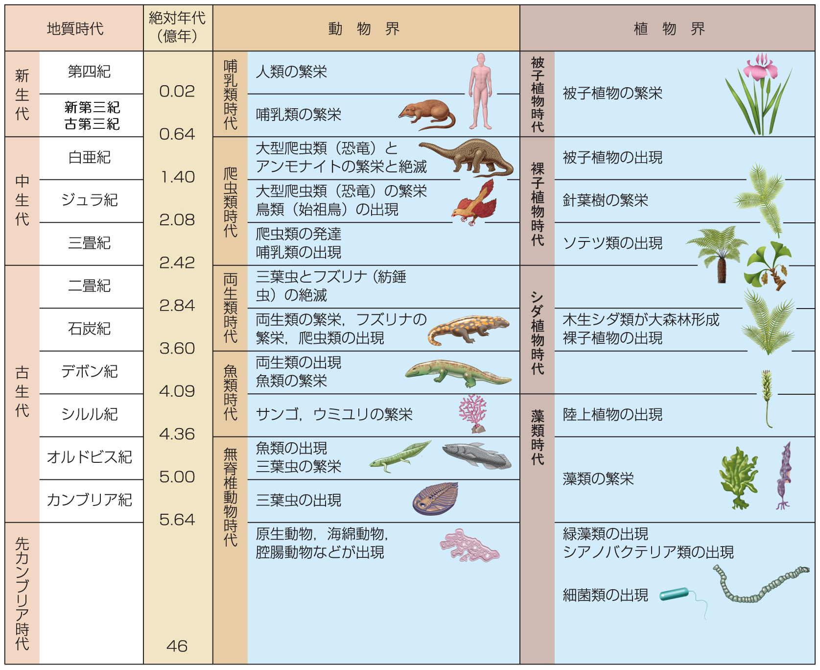 地質時代区分と生物の進化[画像クリックで拡大]