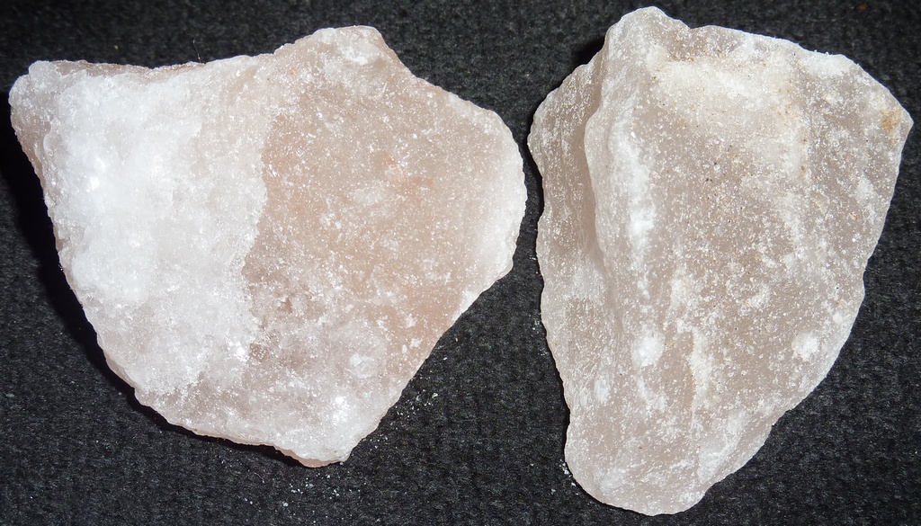 「ヒマラヤ岩塩」として販売されていた岩塩。産地の記載はありませんでしたが、パキスタンのソルトレンジあたりで採掘されたものと思われます。写真の幅は約10 cmに相当。[画像クリックで拡大]